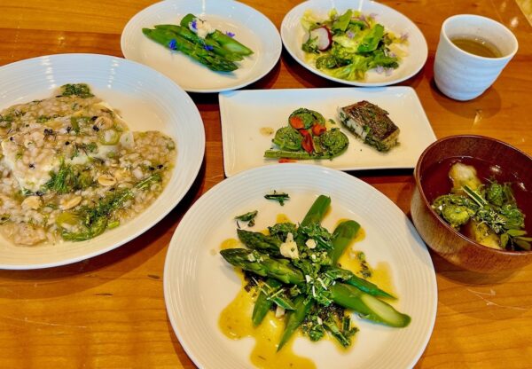 北沢さんの手により、稚鮎と山菜の魅力を生かした一皿一皿を、コース仕立てでご用意。